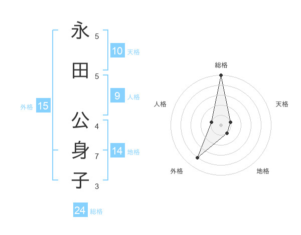 永田 公身子さんの総格は24画の5点!