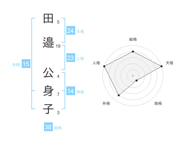 田邉 公身子さんを姓名の画数から五運を鑑定