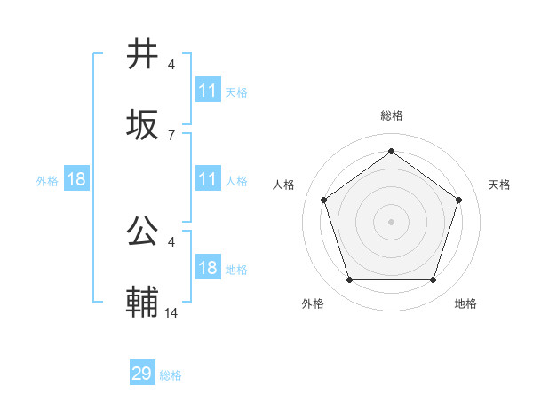 井坂 公輔さんの天格は11画の4点!