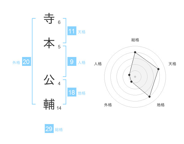 寺本 公輔さんの総格は29画の4点!