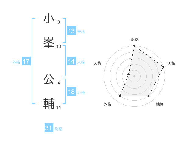 小峯 公輔さんの総格は31画の5点!