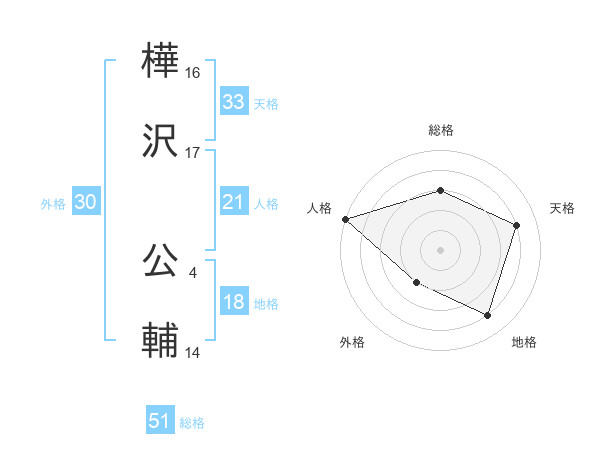 樺沢 公輔さんを姓名の画数から五運を鑑定