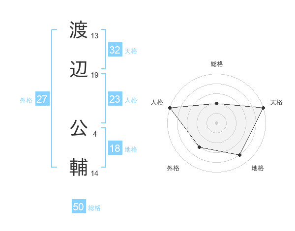 渡辺 公輔さんの天格は32画の5点!
