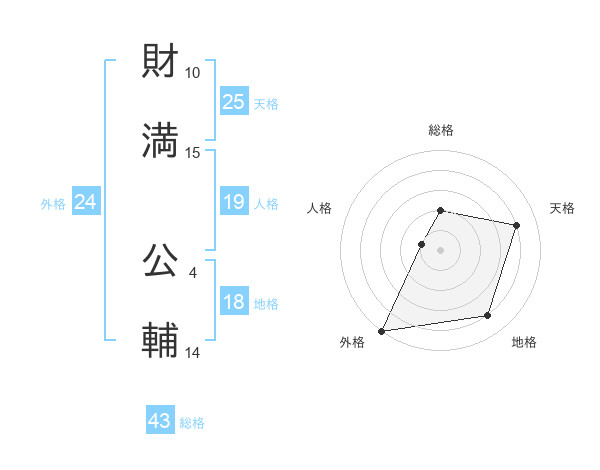 財満 公輔さんの天格は25画の4点!