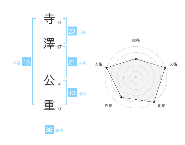 寺澤 公重さんの総格は36画の3点!