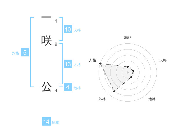 一咲 公さんの総格は14画の1点!