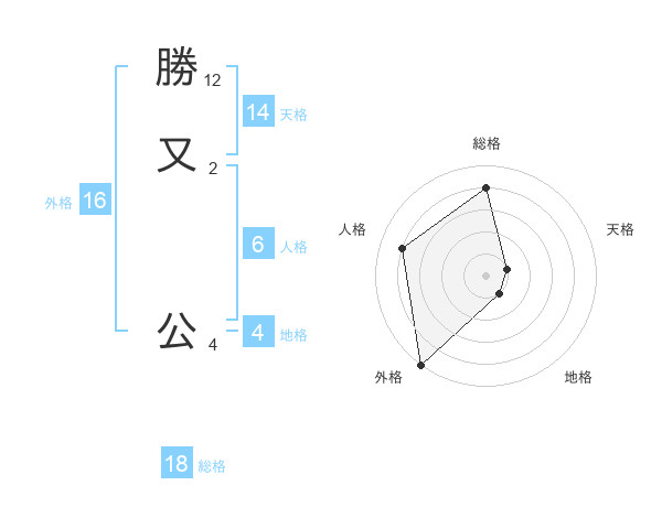 勝又 公さんの総格は18画の4点!