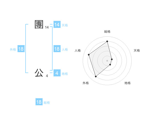 團 公さんの総格は18画の4点!