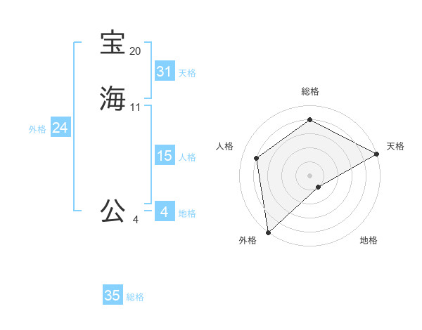 宝海 公さんの総格は35画の4点!