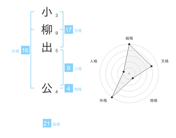 小柳出 公さんの総格は21画の5点!