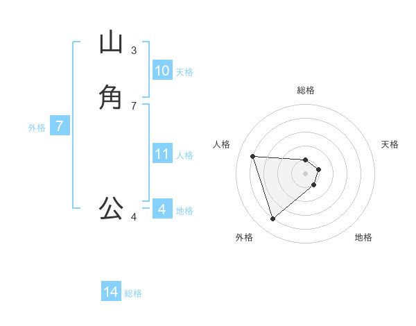 山角 公さんを姓名の画数から五運を鑑定