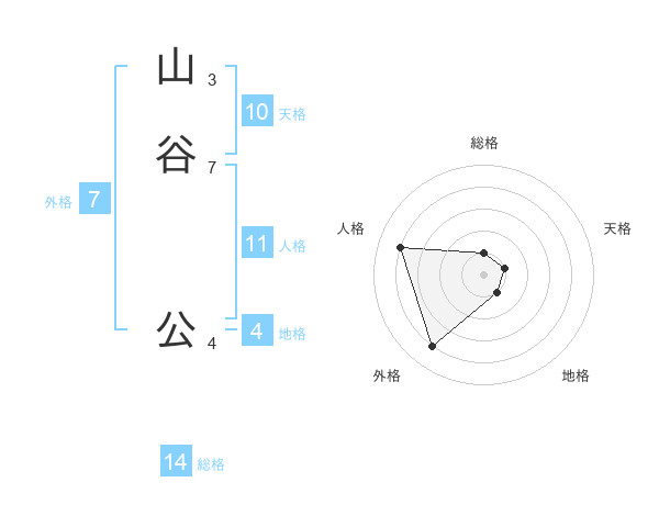 山谷 公さんの外格は7画の4点!