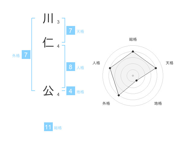 川仁 公さんの天格は7画の4点!