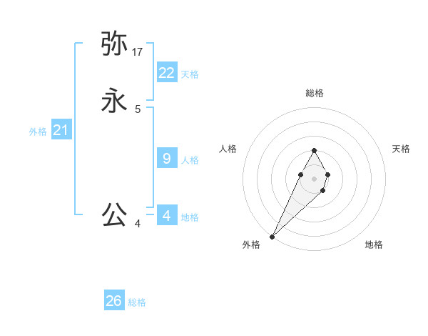 弥永 公さんの外格は21画の5点!