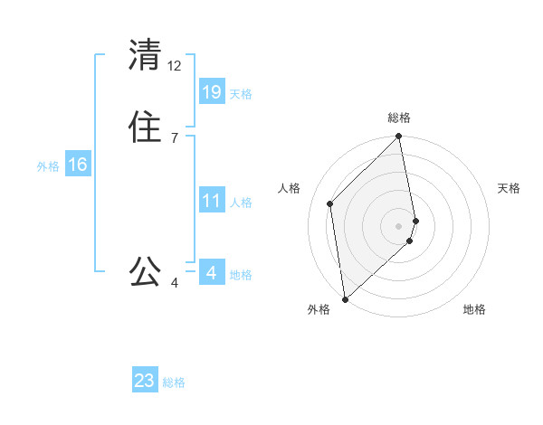 清住 公さんの天格は19画の1点!