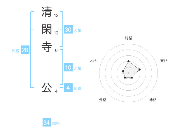 清閑寺 公さんの総格は34画の2点!