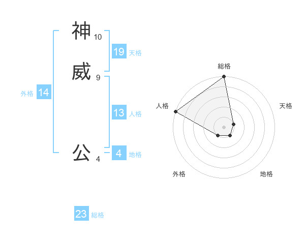 神威 公さんの総格は23画の5点!