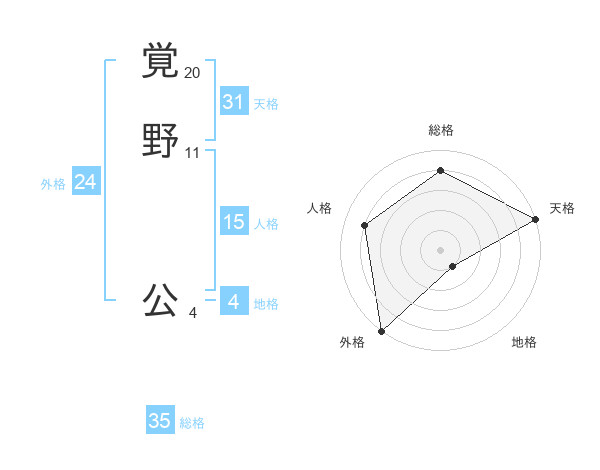 覚野 公さんの総格は35画の4点!