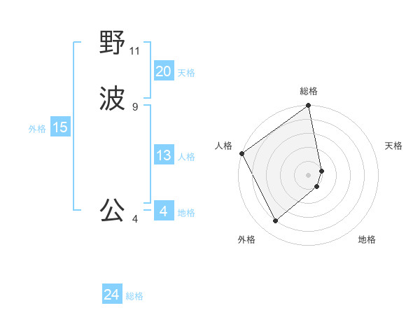 野波 公さんの総格は24画の5点!