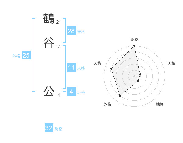 鶴谷 公さんを姓名の画数から五運を鑑定