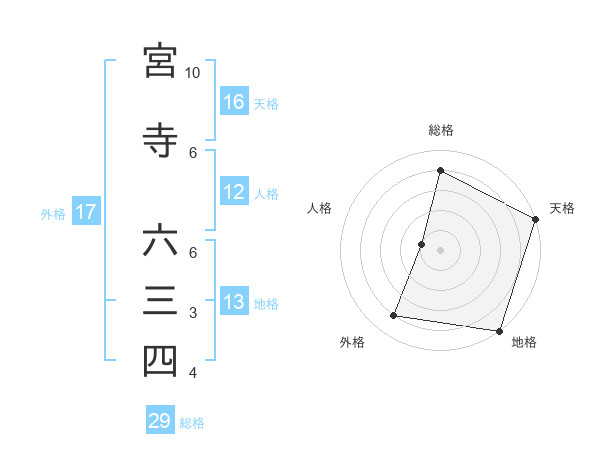 宮寺 六三四さんを姓名の画数から五運を鑑定