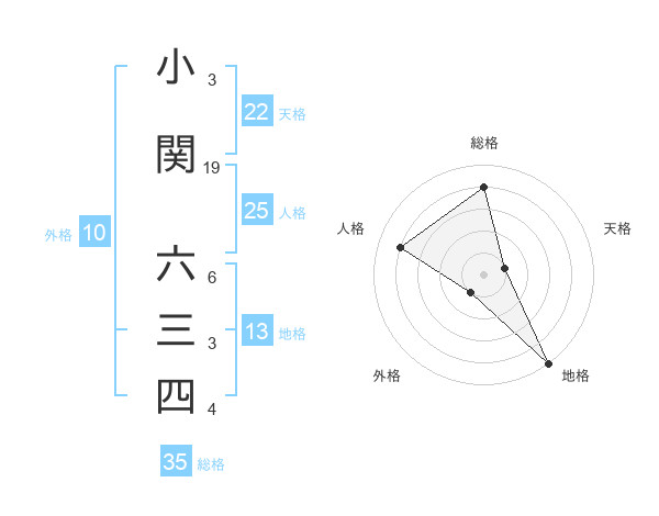 小関 六三四さんの総格は35画の4点!