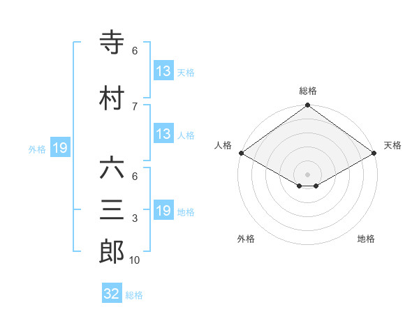 寺村 六三郎さんを姓名の画数から五運を鑑定