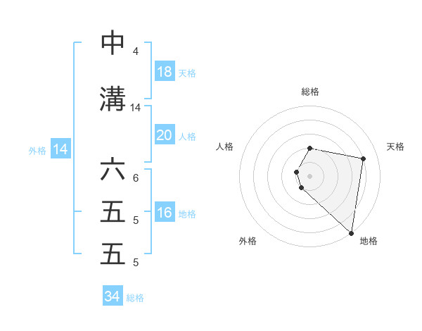 中溝 六五五さんの総格は34画の2点!
