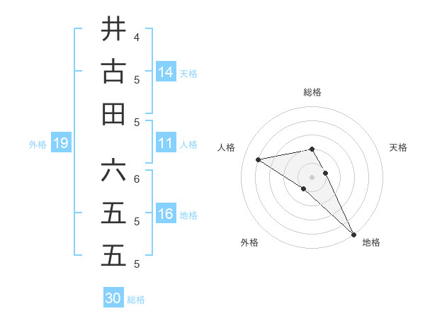 井古田 六五五さんの総格は30画の2点!