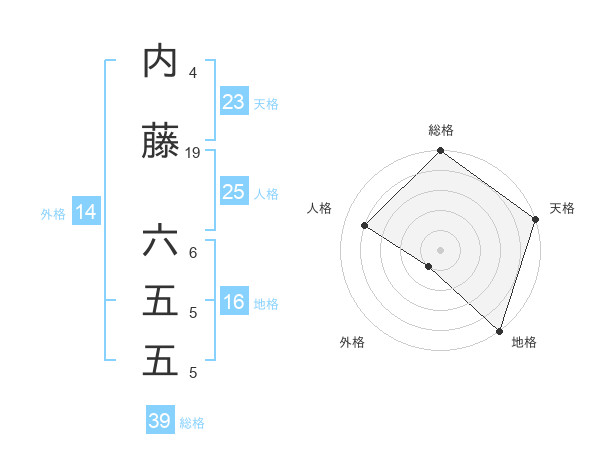 内藤 六五五さんを姓名の画数から五運を鑑定