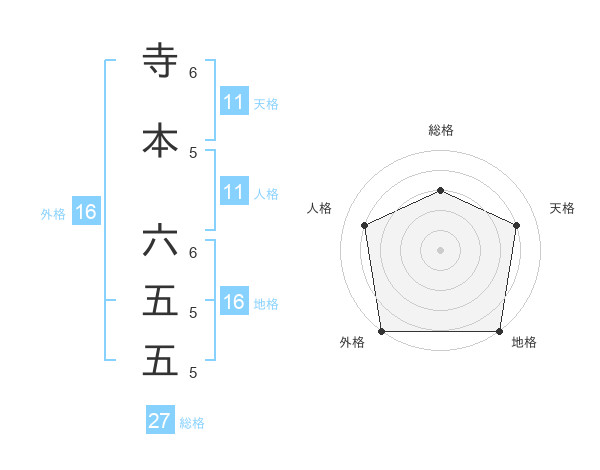 寺本 六五五さんを姓名の画数から五運を鑑定