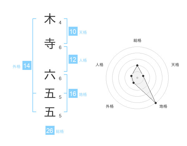 木寺 六五五さんの総格は26画の2点!