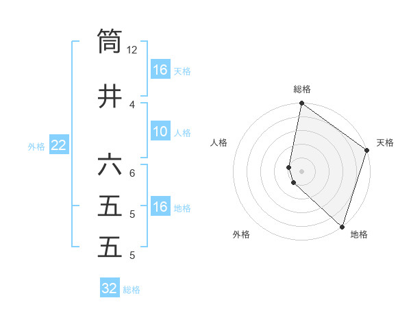 筒井 六五五さんを姓名の画数から五運を鑑定