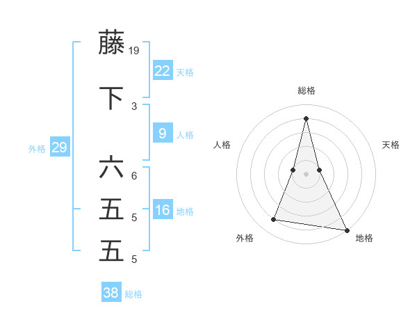 藤下 六五五さんの総格は38画の4点!