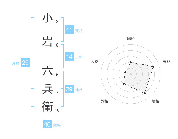 小岩 六兵衛さんの総格は40画の2点!