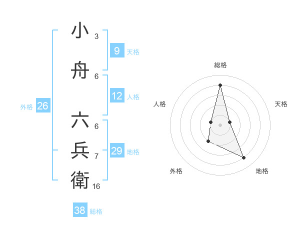 小舟 六兵衛さんの総格は38画の4点!