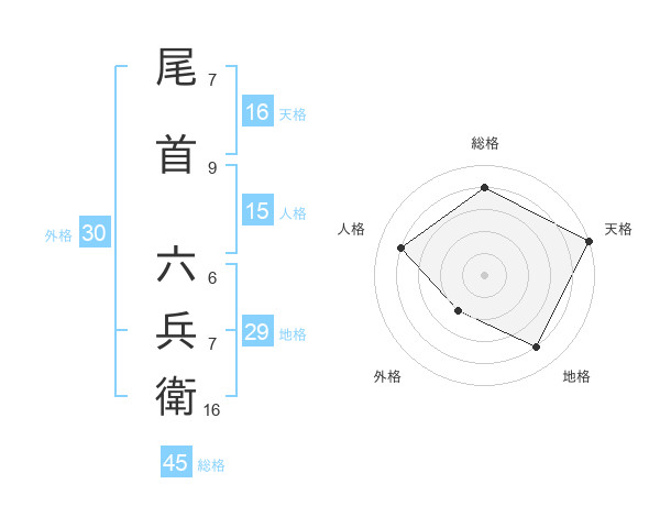 尾首 六兵衛さんの総格は45画の4点!