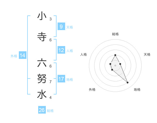 小寺 六努水さんの総格は26画の2点!