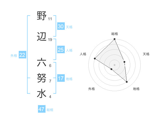 野辺 六努水さんを姓名の画数から五運を鑑定