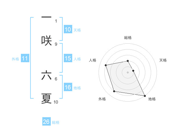 一咲 六夏さんを姓名の画数から五運を鑑定