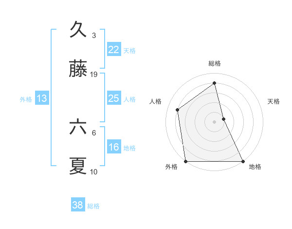 久藤 六夏さんの外格は13画の5点!