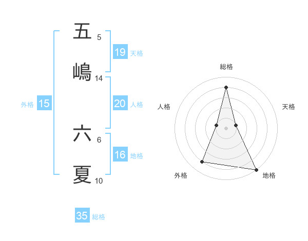 五嶋 六夏さんの総格は35画の4点!