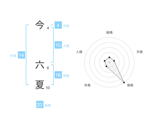 今 六夏さんを姓名の画数から五運を鑑定