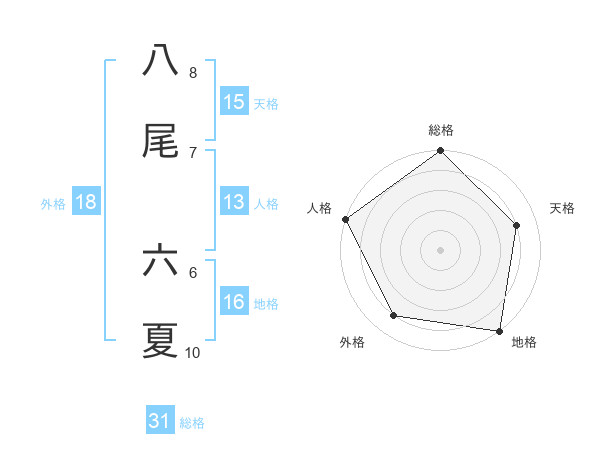 八尾 六夏さんの総格は31画の5点!