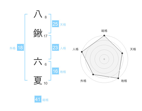 八鍬 六夏さんの総格は41画の5点!
