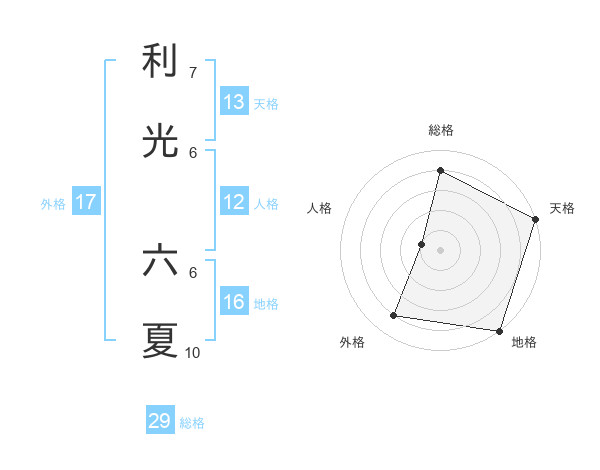 利光 六夏さんの天格は13画の5点!