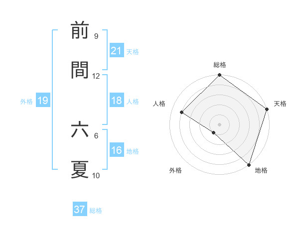前間 六夏さんの総格は37画の5点!