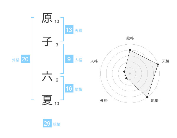 原子 六夏さんの天格は13画の5点!