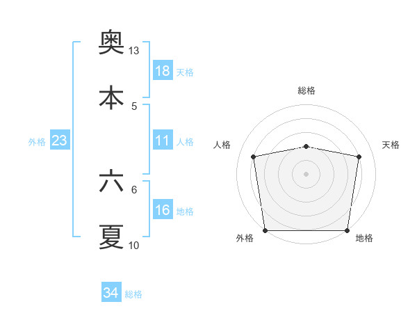 奥本 六夏さんの外格は23画の5点!