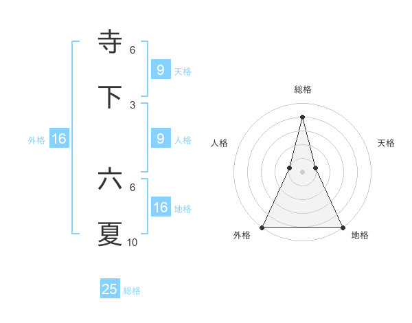 寺下 六夏さんを姓名の画数から五運を鑑定